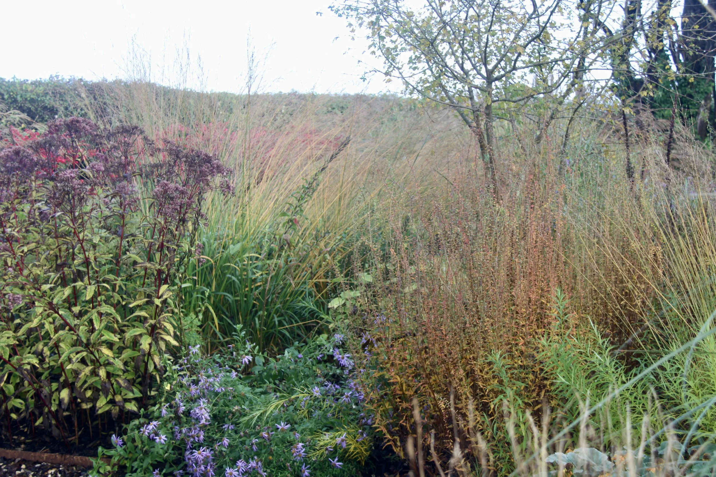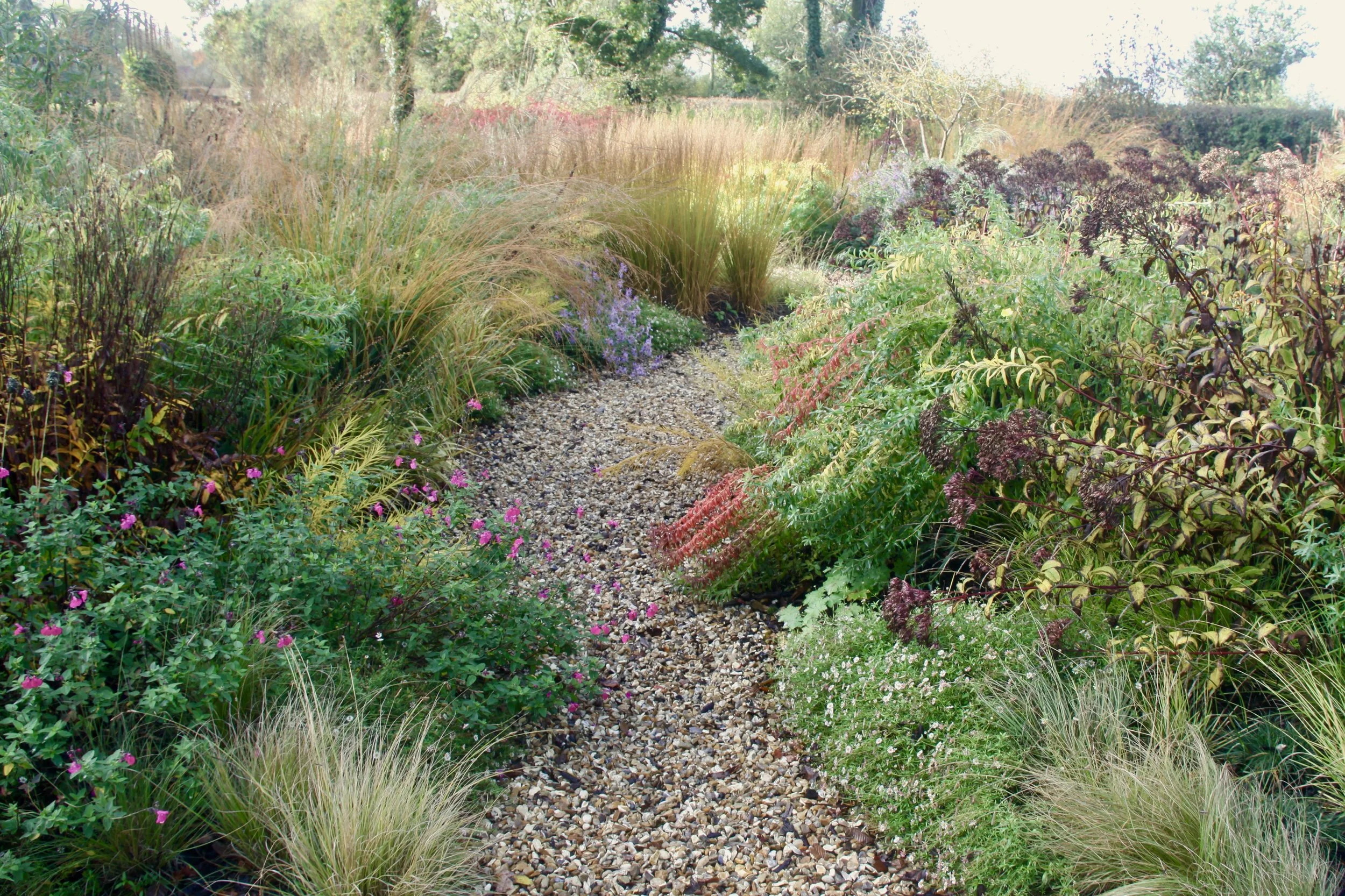 Planted in Spring 2023, the garden offers interest through all seasons. At its heart lies a bold, perennial-inspired planting scheme, featuring an uninhibited colour palette that celebrates the generosity that a garden can offer. Towards the perimeter of the garden, a shrub focused planting provides rich autumn hues and winter structure, showcasing plants chosen for their striking stems, flowers, and form even in the colder months. The result is a garden that feels both dynamic and thoughtful. Rooted in place, yet lively throughout the year.